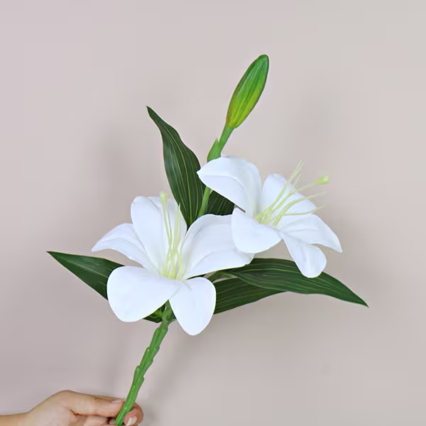 Artificial 3 Heads Lily Flower 77cm Length Lily