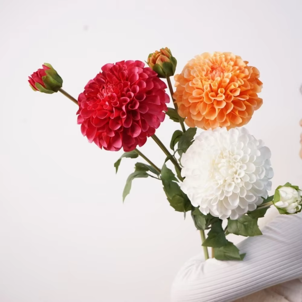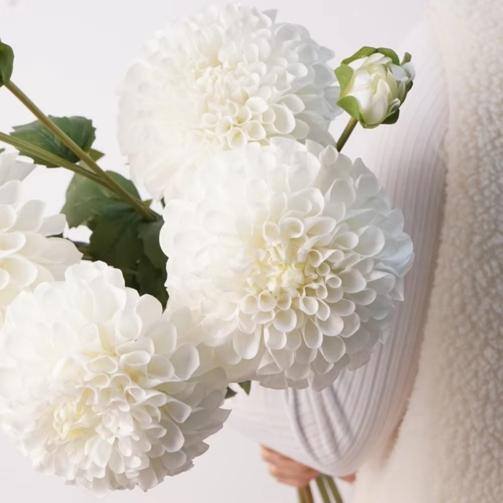 Artificial dahlia real touch Artificial White 2 Heads Dahlia Flowers