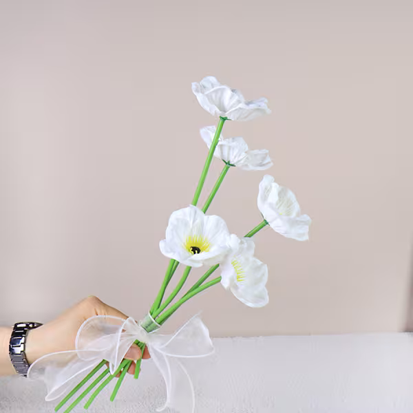 Mini Poppy Real Touch Flowers White PU Artificial Poppy Flower