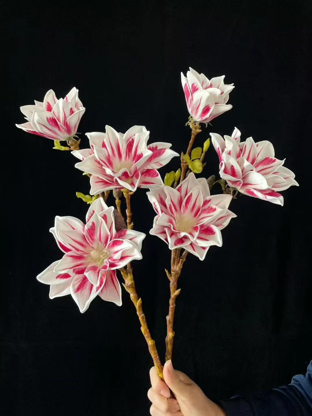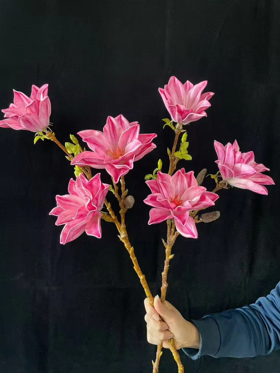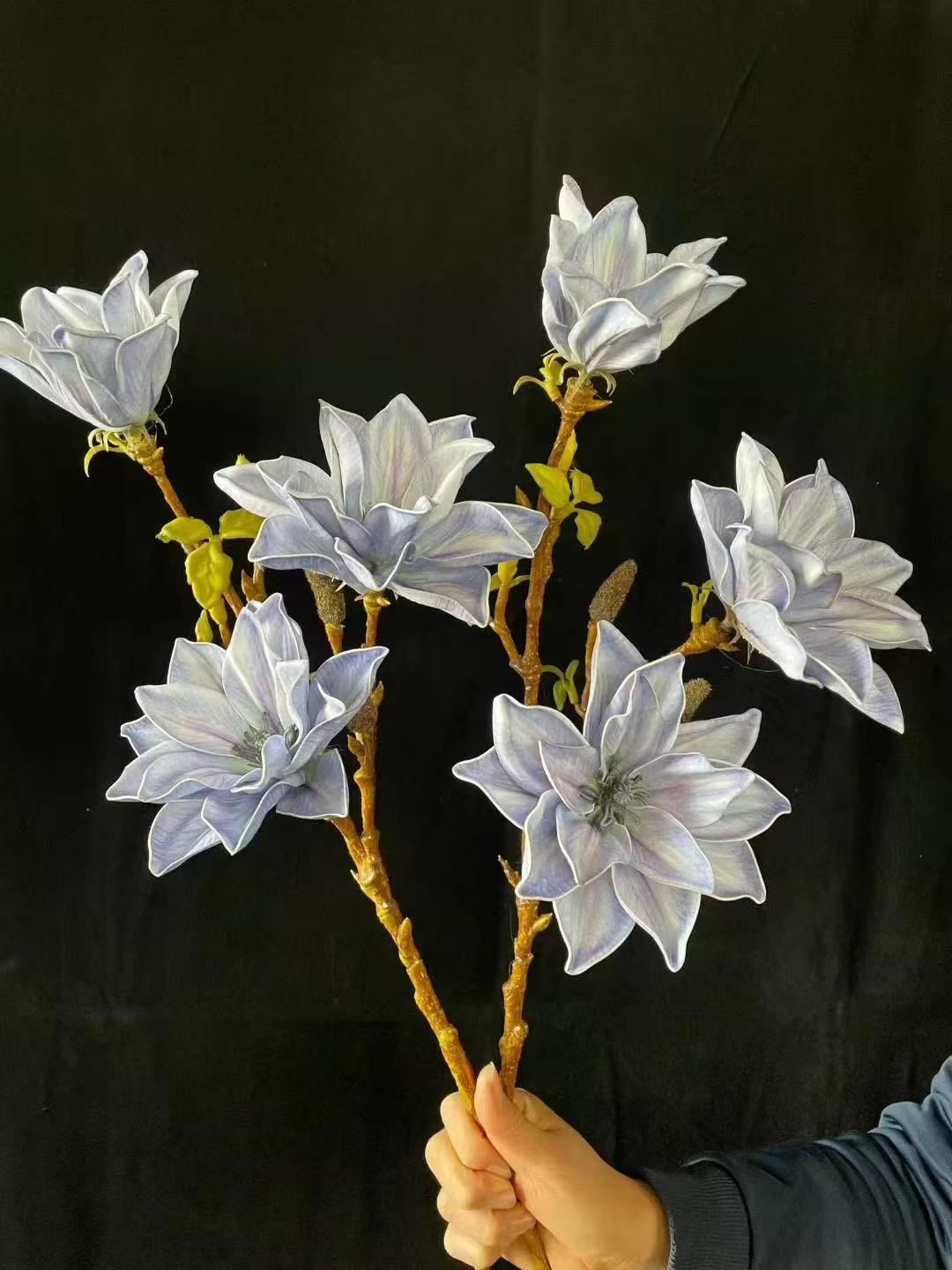 Each petal and leaf & branch is hand-painted or dyed, adding depth and realism. Texturing techniques are applied to give a natural feel to the flowers.